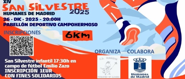El CD Running Humanes, con la colaboración del Ayuntamiento, organiza el viernes 26 de diciembre una nueva edición de la San Silvestre de Humanes, una prueba ya plenamente asentada en el calendario navideño de carreras populares de la zona sur madrileña y que alcanza su 14ª edición.