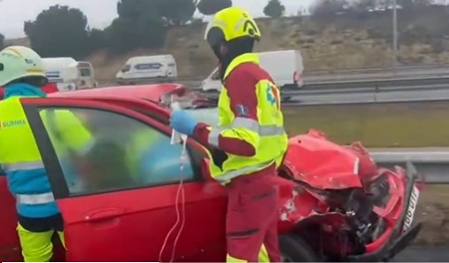 El conductor del vehículo, único ocupante del coche, ha sufrido politraumatismos. Bomberos de Alcorcón han tenido que excarcelar al herido del interior del habitáculo, que ha quedado muy deformado.